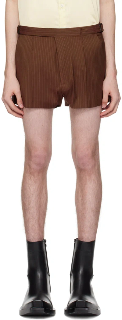 Brown Double Buckle Shorts In Brown Stripes