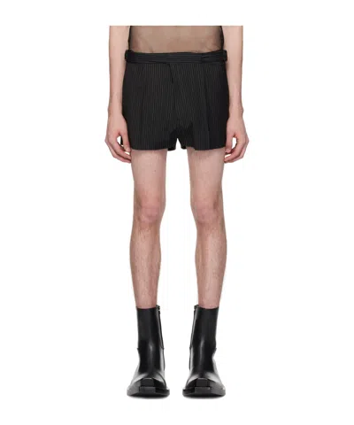 Black Double Buckle Shorts In Black Stripes