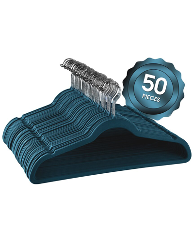 50pc Flocked Velvet Clothes Hangers With Swivel Hooks In Blue
