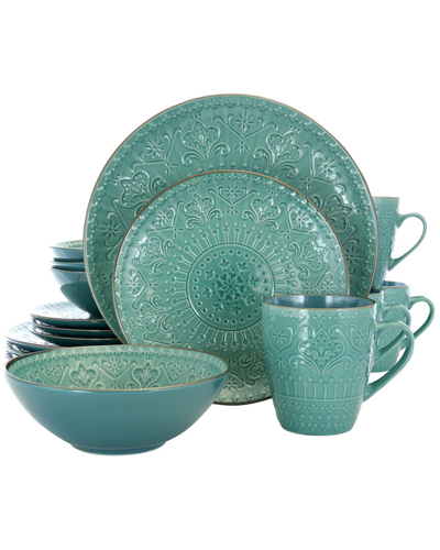 Emilia 16 Piece Double Bowl Stoneware Dinnerware Set In Green
