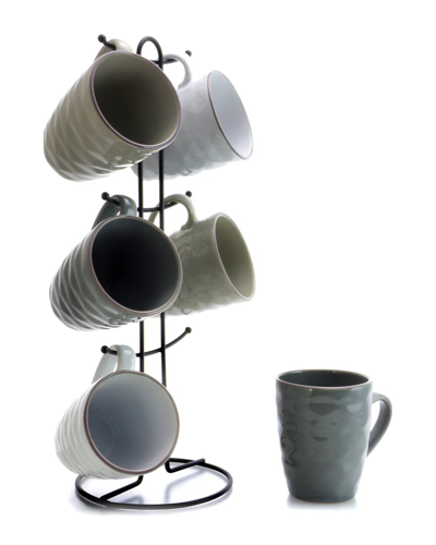 Diamond Waves 6-piece 12 Oz. Mug Set With Stand In Multi