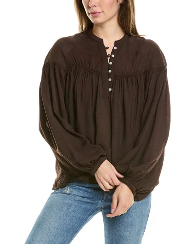 Long-sleeve Henley Knit Top In Brown