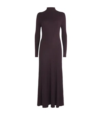 Wool-silk Rib-knit Maxi Dress In Brown