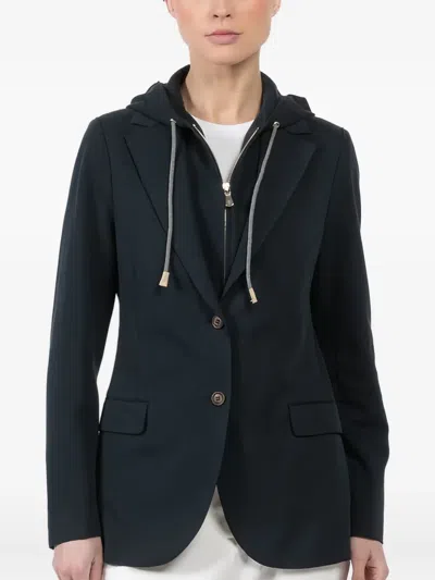 Single-breasted Long Linen & Wool-blend Blazer In Blue