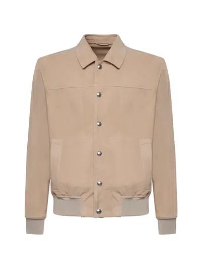 Buttoned Suede Jacket In Brown