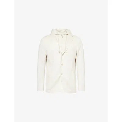 Mens Sand Detachable-hood Notched-lapel Stretch Cotton-blend Jacket In Sabbia E Sabbia