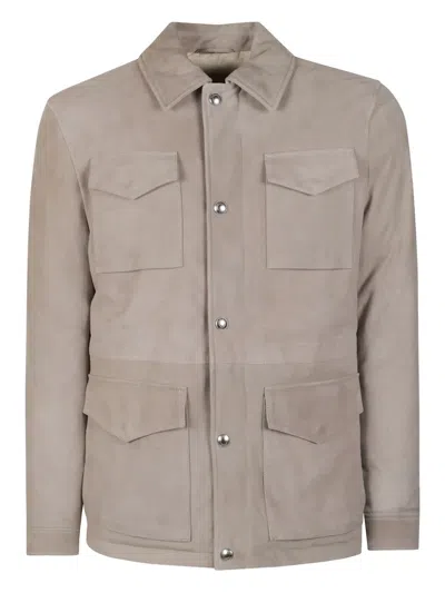 Structured Military-inspired Jacket With Suede-like Texture In Brown
