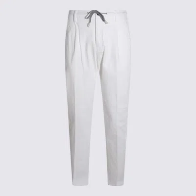 White Cotton Blend Trousers In Beige