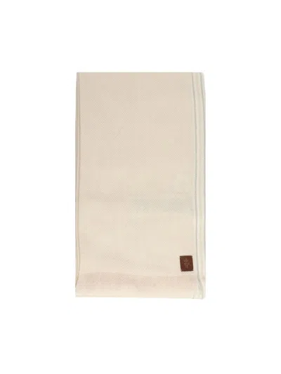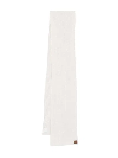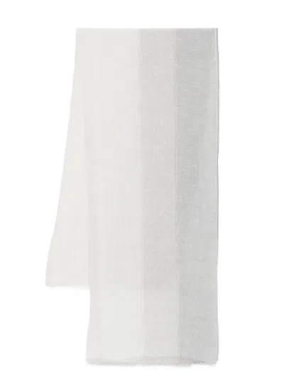 Mens Sand And Lt. Gray Striped-trim Wool Scarf In White