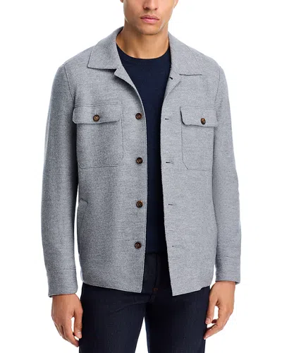 Mens Smoke Melange Gray Speckled-pattern Long-sleeve Wool-silk Blend Overshirt