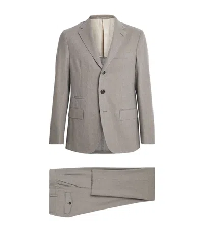 Mens Blue Notched-lapel Straight-leg Wool Silk And Linen Blend Suit