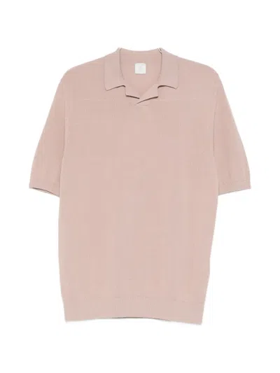 Textured Knit Polo Short Sleeves Contrast Trim In Pink