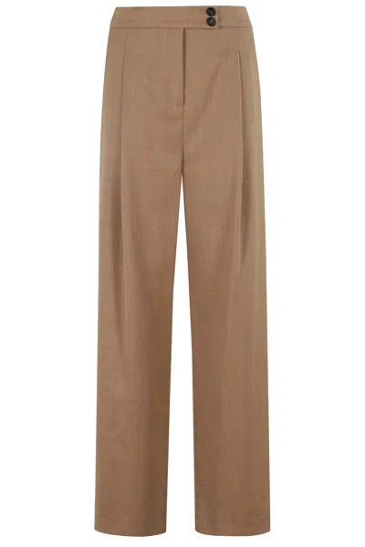 Wide-leg Trousers With Front Pleats In Brown