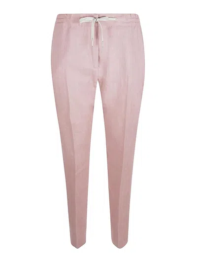 Relaxed Fit Drawstring Trousers With Tapered Legs In Pink