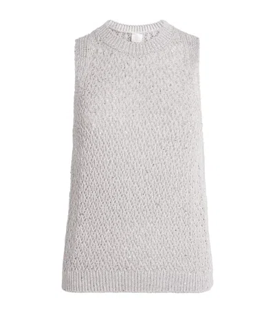 Linen-blend Sequin-embellished Sweater Vest In Gray