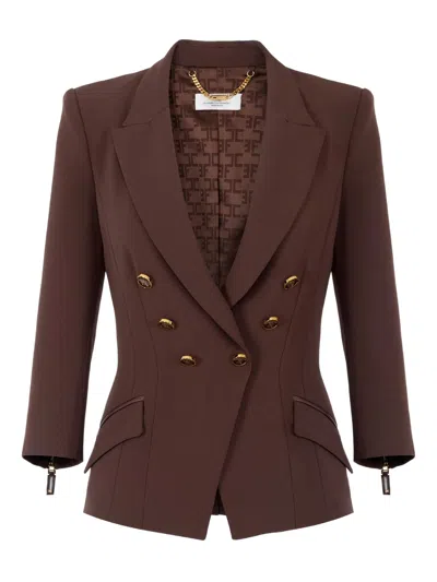 Tailored Brown Jacket With Gold-tone Double-breasted Closure In Black