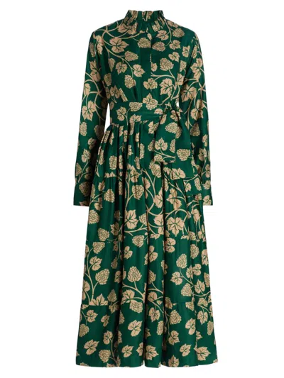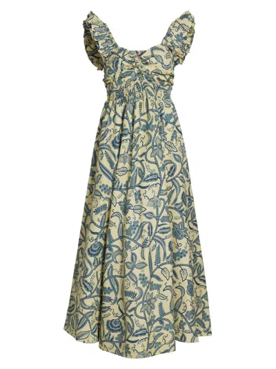 Women's Ibukun Botanical-print Cotton A-line Midi-dress In Blue