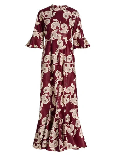 Women's Teniola Printed Long-sleeve Maxi Dress In Burgundy
