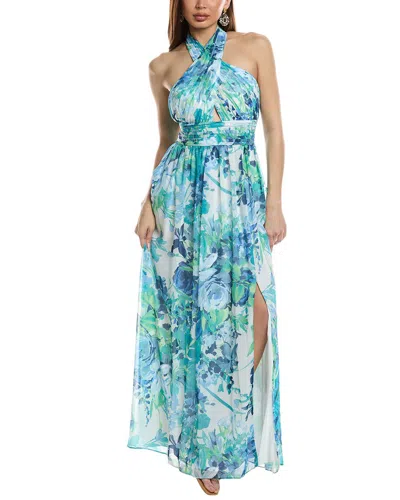 Womens Halter Pleated Evening Dress In Ivory Multi
