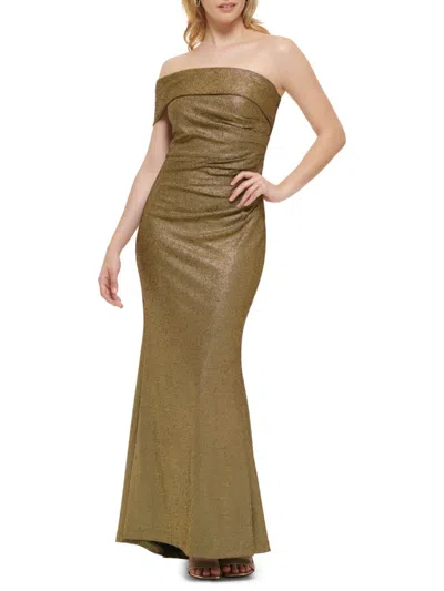 Women's One-shoulder Foil Knit Gown In Brown