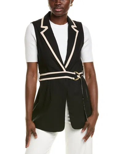 Belted Sleeveless Linen-blend Blazer In Black