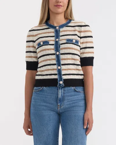 Frayed Denim Trim Short Sleeve Cardigan In Multi