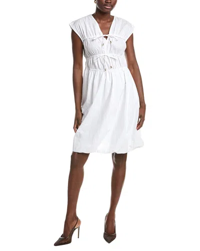 Stretch Poplin Cap Sleeve Paneled Dress In White