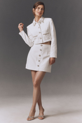 Kyra Crochet Balloon-sleeve Top & Mini Skirt Set In White