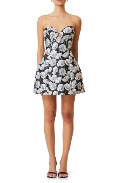 Willow Floral Jacquard Cocktail Minidress In Black White