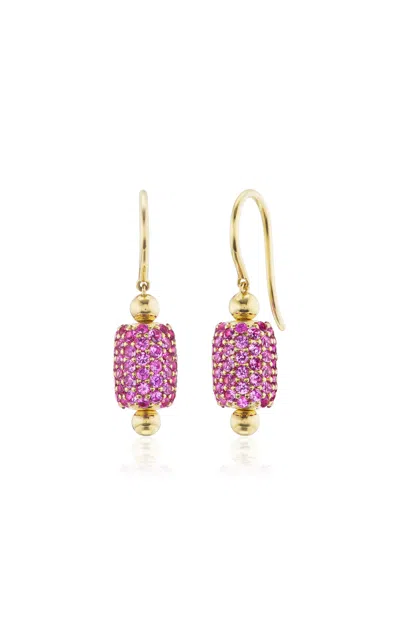 Yellow Gold And Pink Sapphire Holly Huggie Earrings In Black