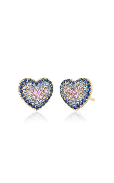 Yellow Gold Holly Huggie Earrings In Blue