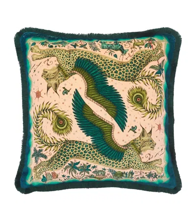X Red Leopard Bosque Dreams Cushion In Green