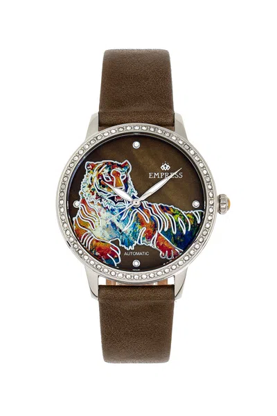 Diana Automatic Engraved Mop Leather-band Watch In Green