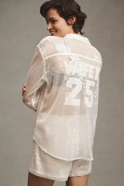 Wifey Sequin Buttondown Shirt In White