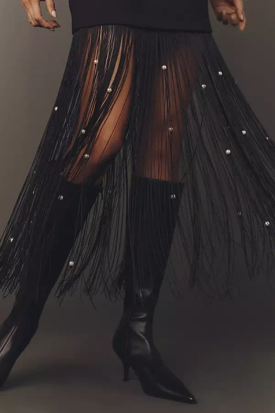 Isidora Embroidery Detail Mixed Media Midi Dress In Black
