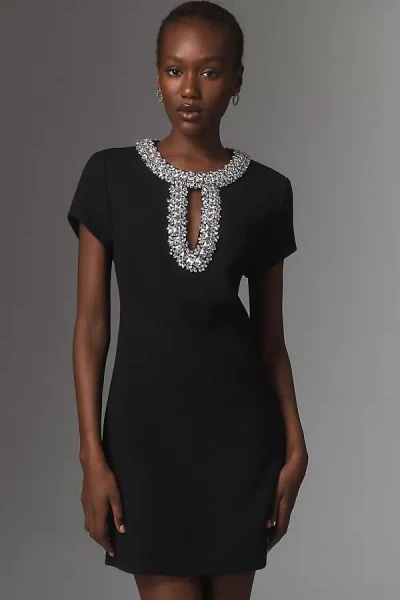 Rhinestone Detail Strapless Velvet Minidress In Black