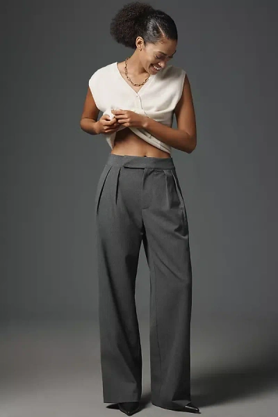 Pleated High-rise Trousers Pants In Gray