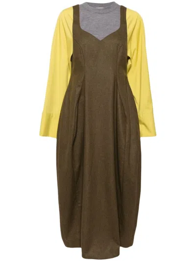 Contrasting Long-sleeves Maxi Dress In Brown