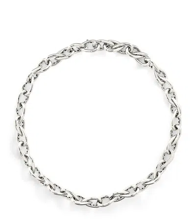 White Gold And Diamond Drop Links Chain Necklace In Metallic