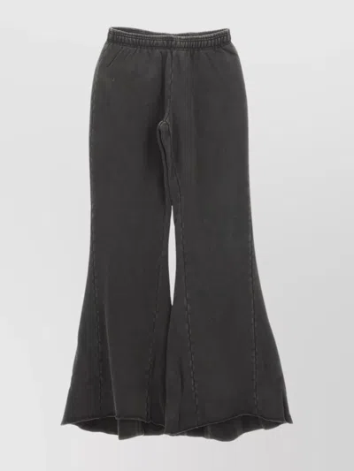 Cotton Flared Trousers Elastic Waistband Seam Legs In Brown