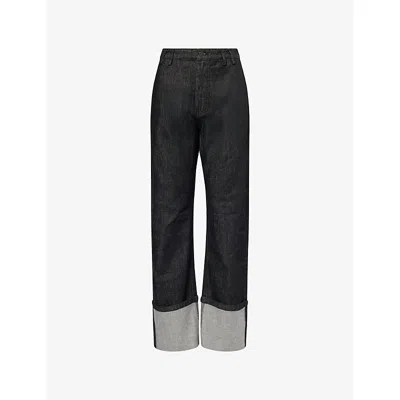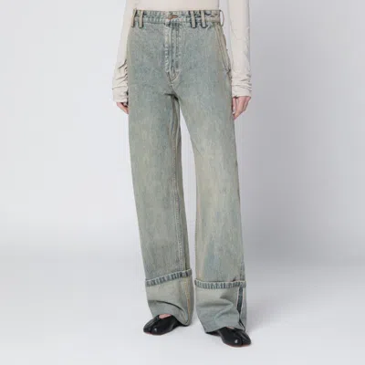 Wide-leg Jeans With Washed Effect In Blue