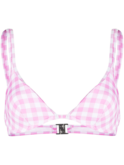 Light Blue Gingham Ruffle-trimmed Bikini Top
