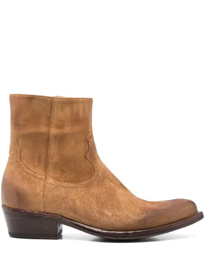 绒面皮拉链开合西部风低跟靴(4厘米)