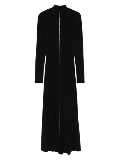 高领正面拉链中长连衣裙