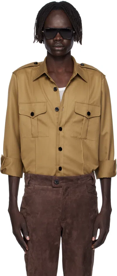 Tan Military Overshirt In Brown