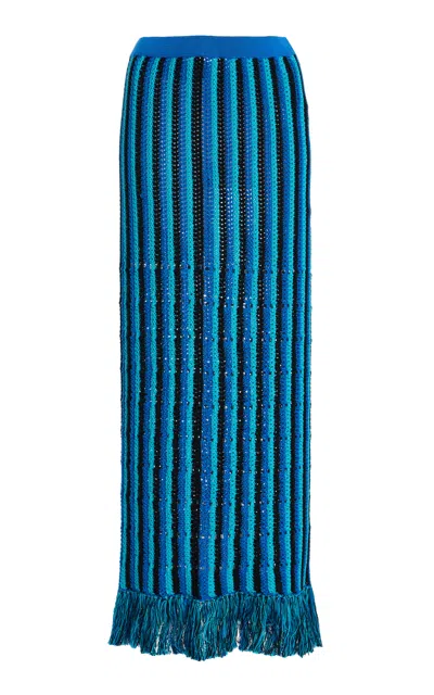 Misti Fringed Crocheted Cotton Midi Skirt In Black