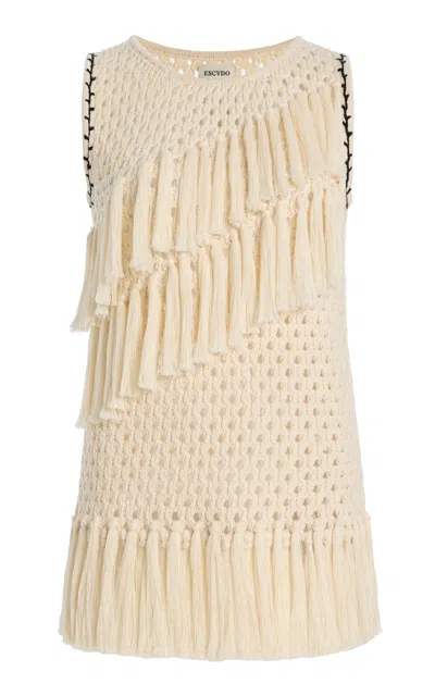 Exclusive Espina Fringed Crocheted Cotton Top In White