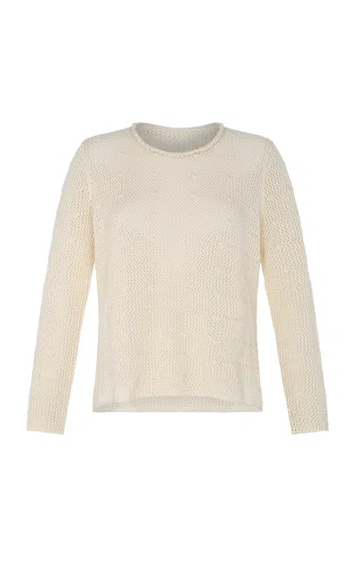 Litoral Crocheted Cotton Sweater In Ivory