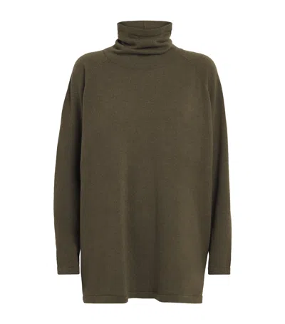 Cashmere Raglan-sleeve Rollneck Sweater In Green