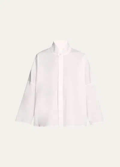 Chinese Imperial Shirt With Chinese Collar (mid Plus Length) In White